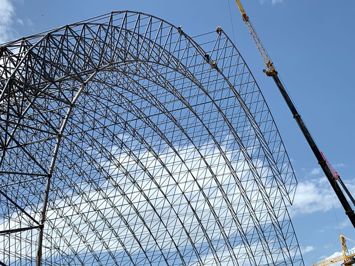 (2)网架加工前应对现场尺寸进行复测,确认无误后方可进行加工、安装;网架制作、运输、安装应遵守《空间网格结构技术规程》JGJ7-2010、《钢网架永康螺栓球节点》JG/T 10-2009、《钢网架永康螺栓球节点用高强度螺栓》 GB/T 16939-2016、《永康钢结构永康工程永康施工规范》 GB50755-2012、《永康钢结构永康工程施工质量验收标准》 GB50205-2020。
